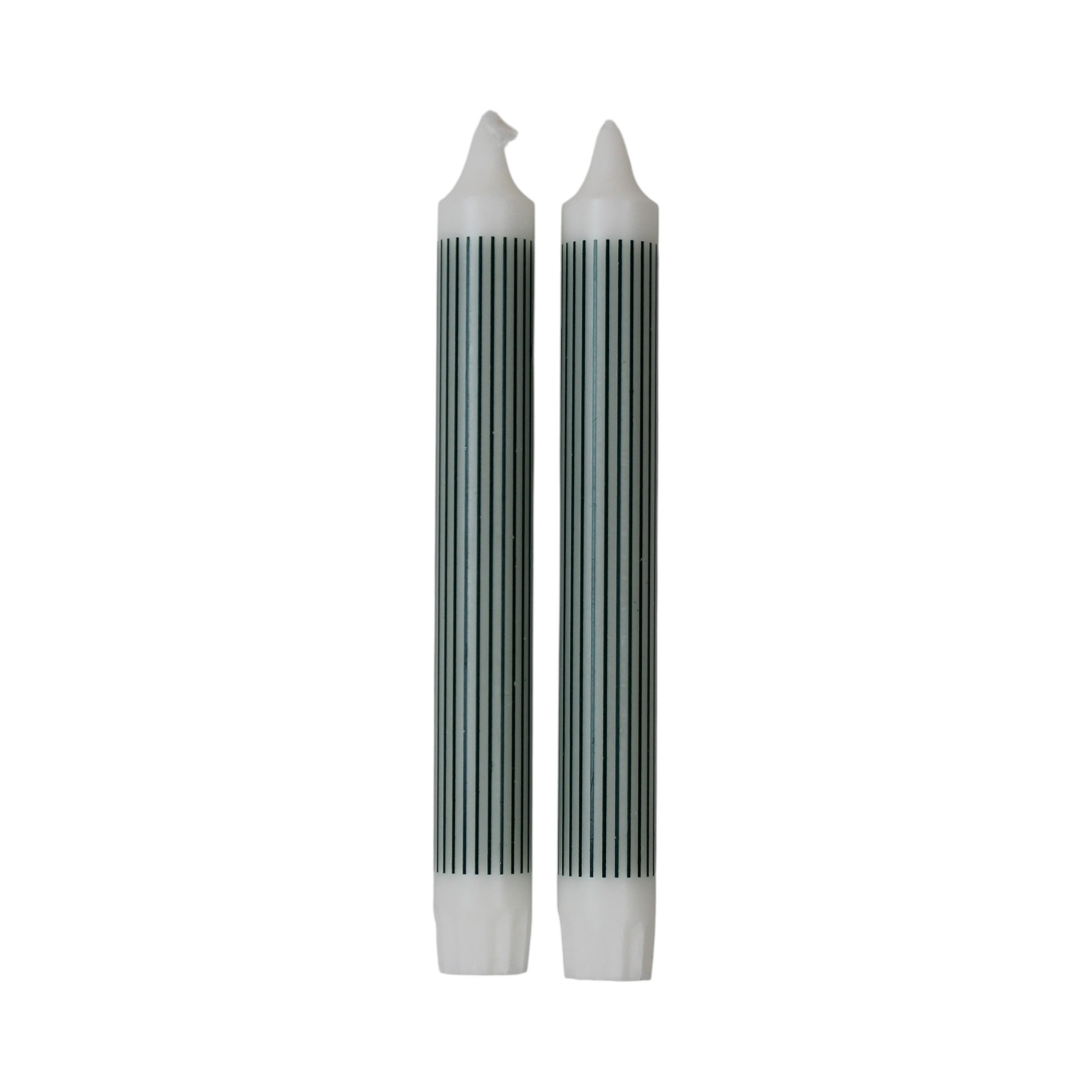 Tafelkerze mit Muster, weiß mit grünen vertikalen Streifen, 100% reines Stearin, 19 cm (2 stk.)