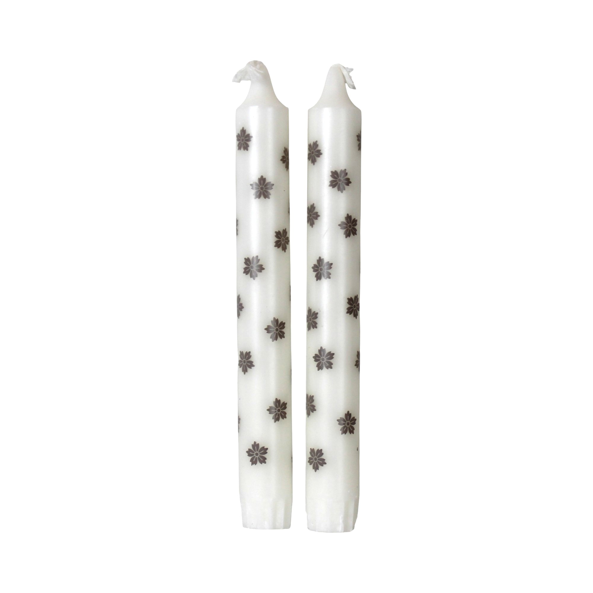 Tafelkerze mit Muster, weiß mit sandfarbenen Blumen, 100% reines Stearin, 19 cm (2 stk.)