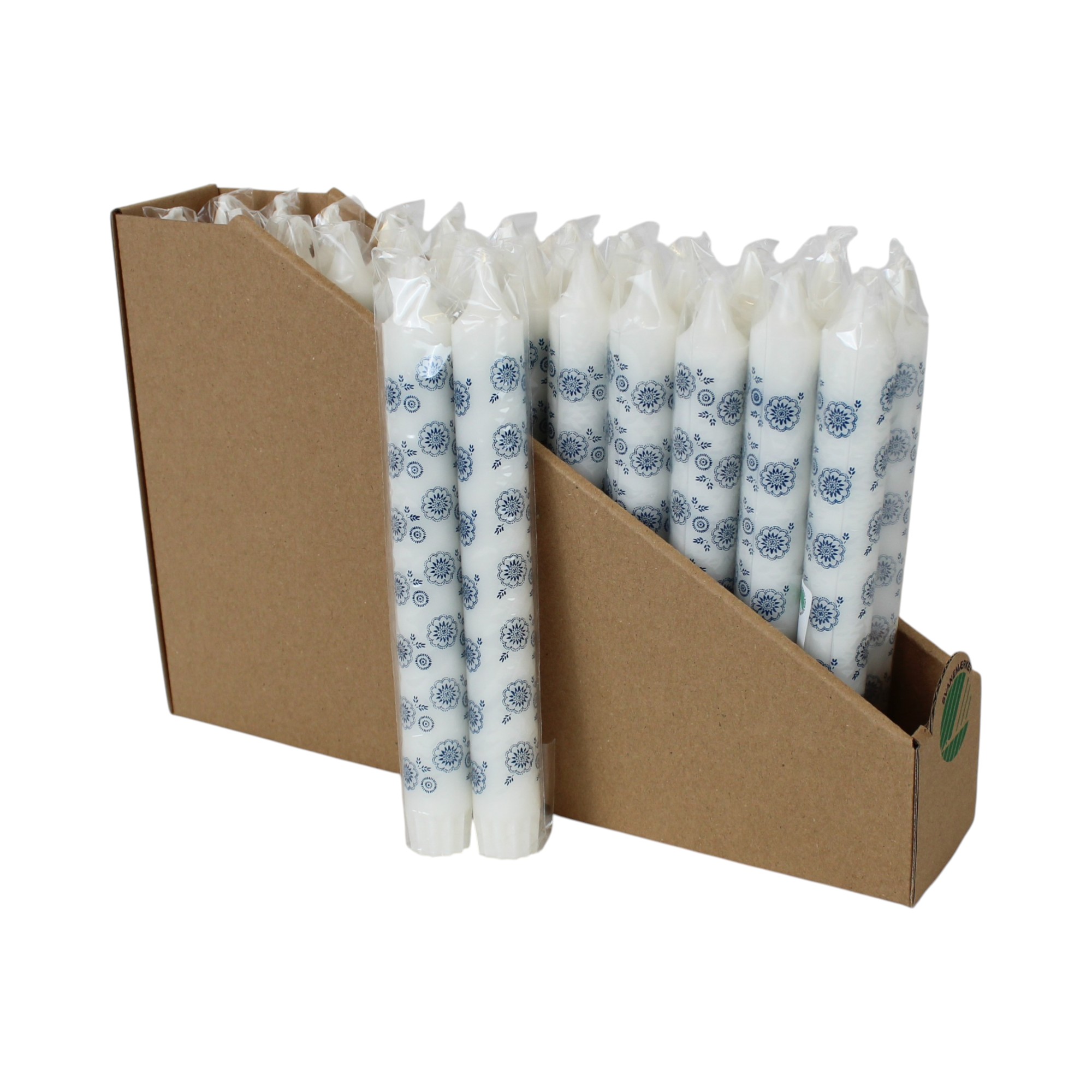 Tafelkerze weiß mit blauem muschelgemustertem Muster, 100% reines Stearin, 19 cm (26 stk.)