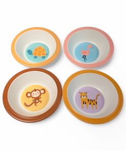 Tiefer Teller aus Melamin mit orangefarbenem Tiger. Praktische und süße Schüssel mit orangefarbenem Rand aus hartem Plastik für Kinder. Der Teller misst 16,3 cm im Durchmesser und ist 4,2 cm hoch. Kann 400 ml enthalten. In derselben Serie ist auch ein Becher erhältlich. Die Schüssel ist aus hartem Melaminplastik hergestellt. Melamin ist ein leichtes und sehr starkes Material, das für Küchengeschirr bestimmt ist. Melamin ist nicht für die Mikrowelle geeignet. Die Produkte sind für die Spülmaschine im oberen Korb bei maximal 50 Grad geeignet. Die Produkte können bis zu 70° C in Flüssigkeiten und Lebensmitteln für maximal 2 Stunden aushalten.