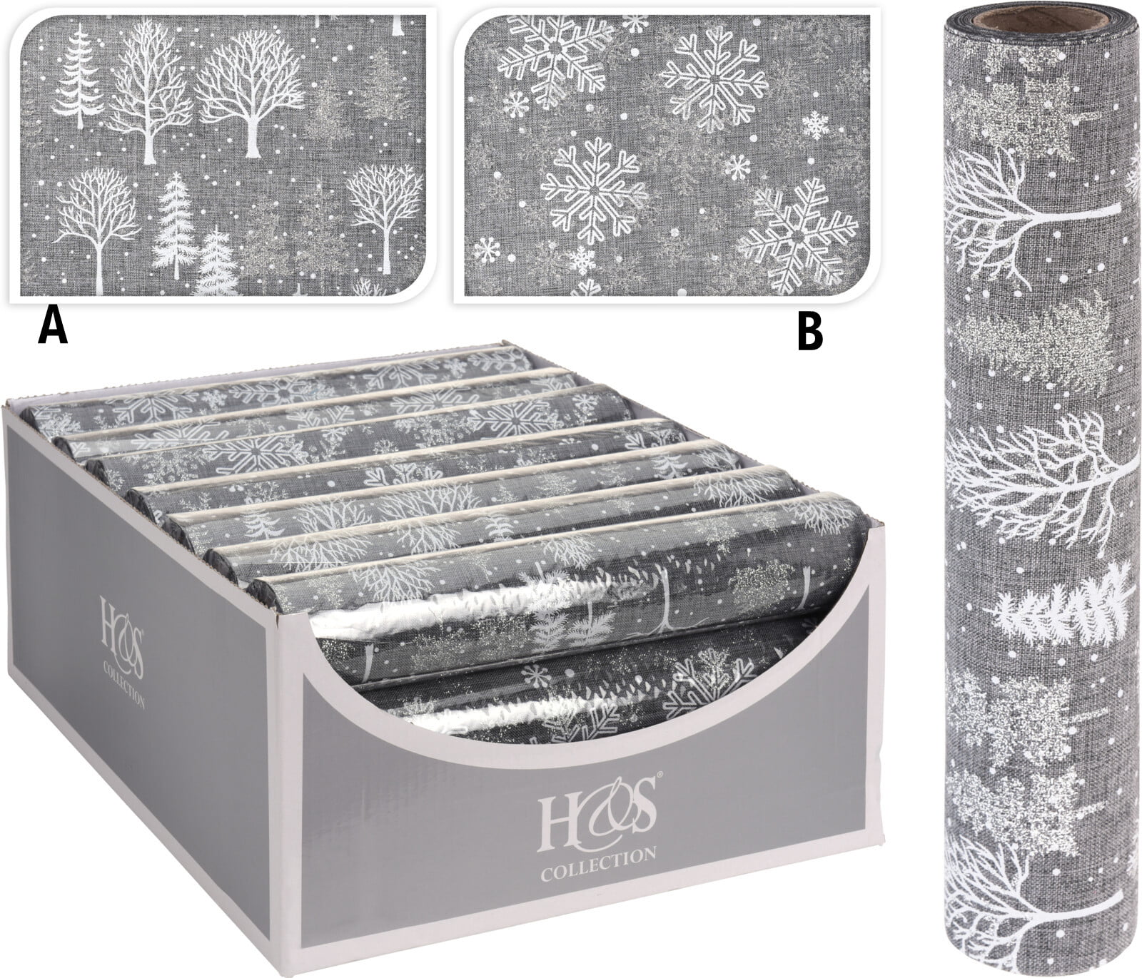 Tischläufer 28 x 250 cm. Grau mit Bäumen aus Polyester