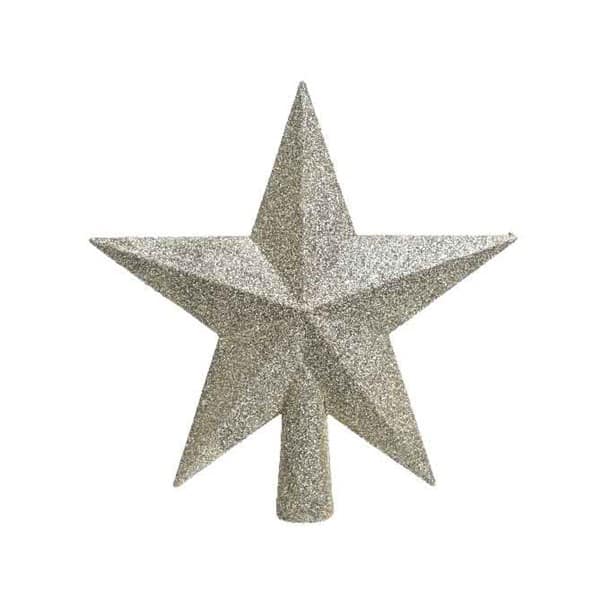 Baumspitze Stern für Weihnachtsbaum, PERLMUTT Kunststoff mit Glitzer, 19 cm.