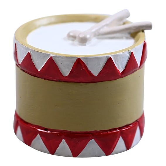 Höhe 2,5 cm. Breite 3 cm. Schöne Weihnachtstrommel in Gold, Rot und Weiß.