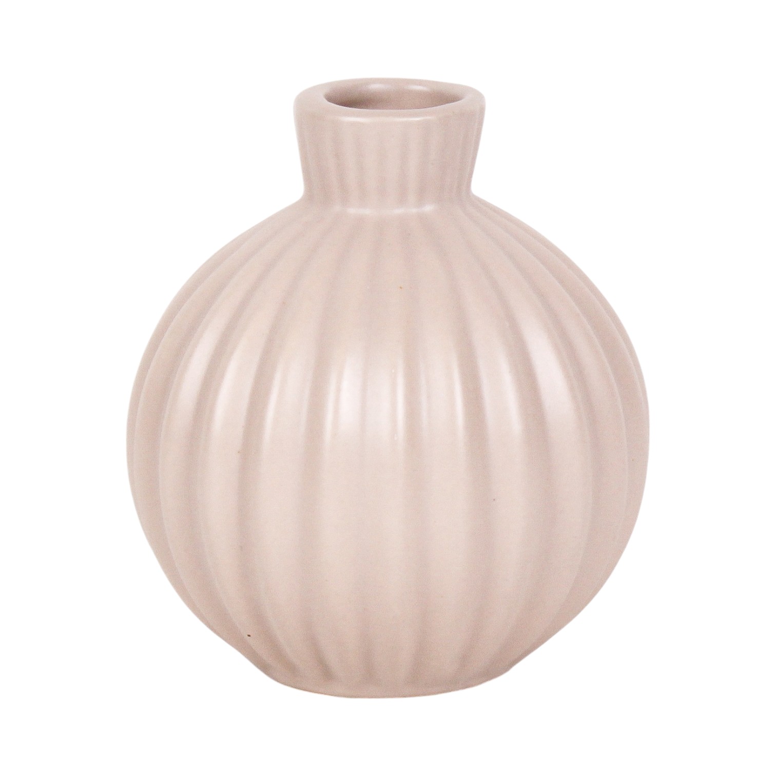 Diese elegante Vase mit Rillen in einem warmen Beigeton ist 8 cm hoch und hat einen Durchmesser von 7 cm. Sie verleiht jedem Raum einen stilvollen Touch. Perfekt für eine einzelne Blume oder einen kleinen Strauß. Kombinieren Sie mit Teelichthaltern aus derselben Serie für einen harmonischen Look.