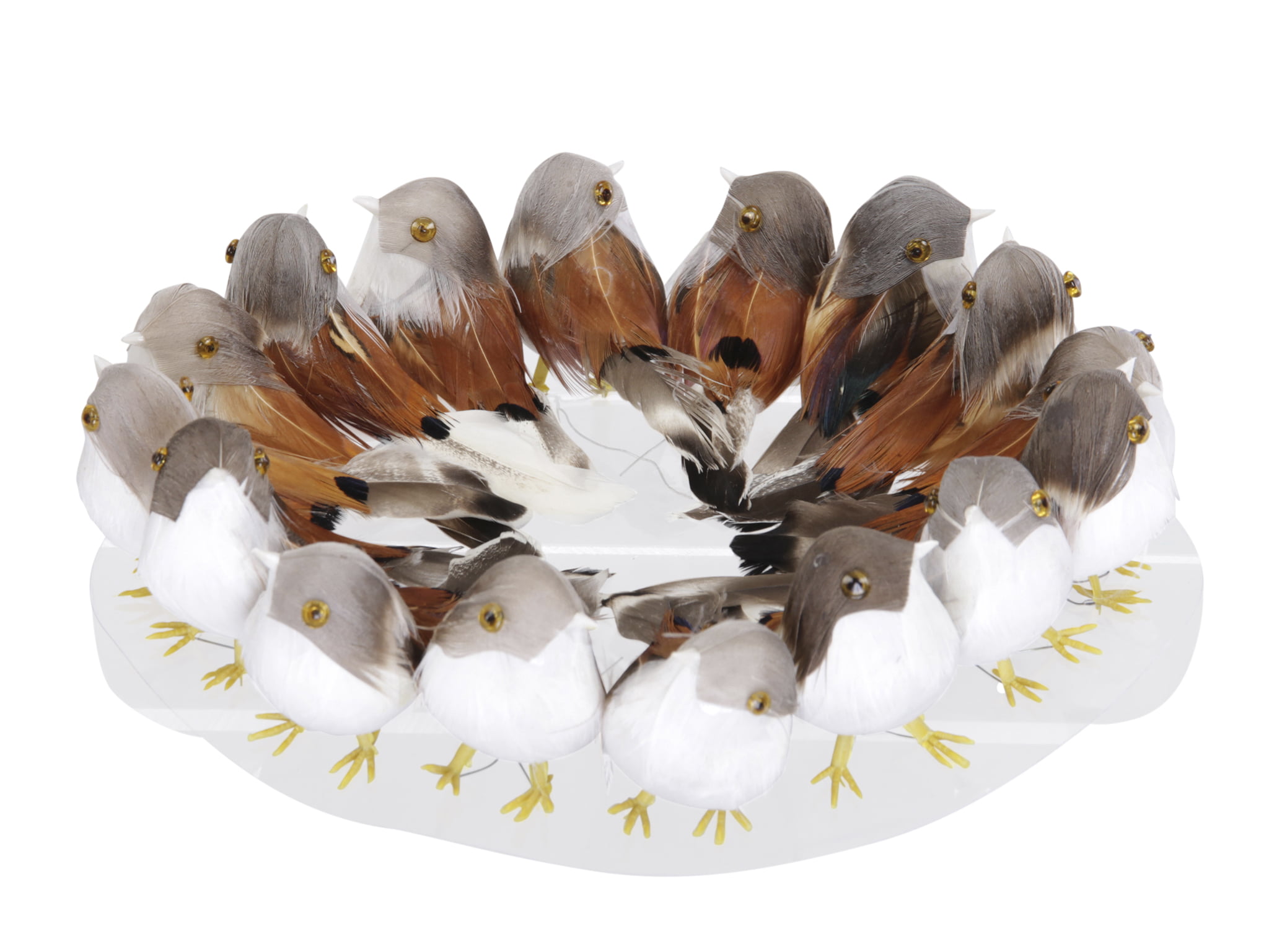 Vogel auf Draht/Faden für Dekorationen. Bräunlich. 9 cm. 16 Stück in einer Schachtel gebrauchsfertig.