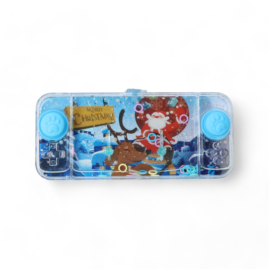 Wasserspiel mit Weihnachtsthema. Blau mit dem Weihnachtsmann und Rudolf.