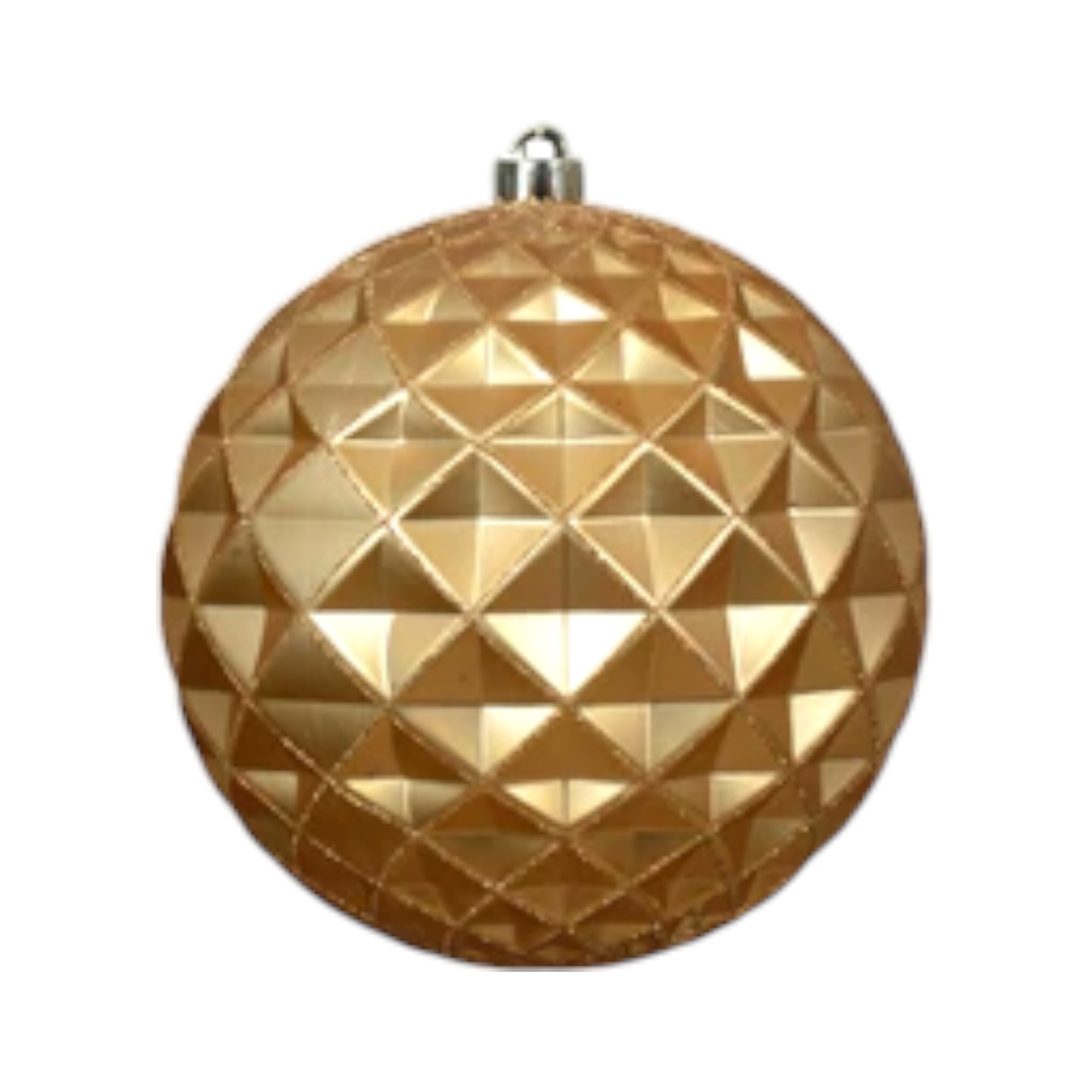 Weihnachtskugel, Plastik, Gold mit Facettenmuster, matt Ø 20 cm.