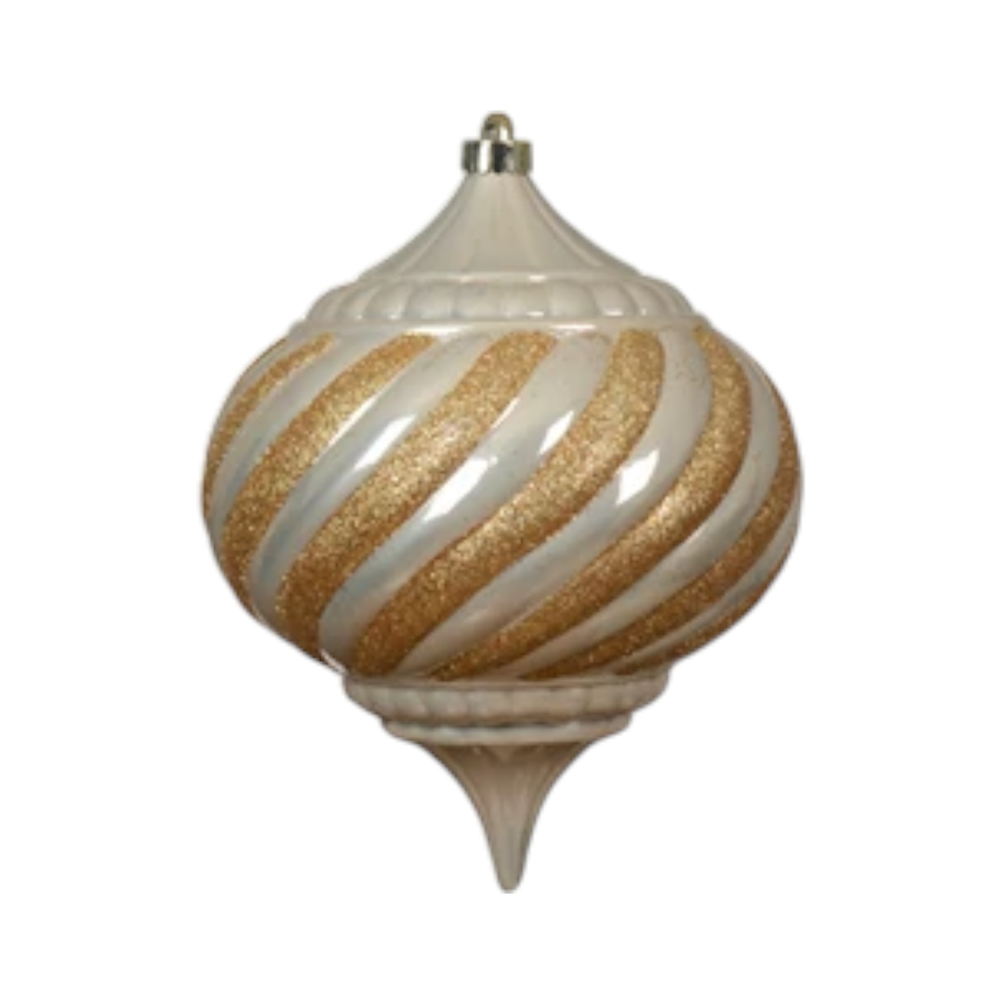 Große Plastik-Weihnachtskugel in Form einer Zwiebel, glänzendem Perlmutt mit Gold-Glitzer-Streifen rundherum. Durchmesser 20 cm. Die Weihnachtskugel ist aus recyceltem Kunststoff hergestellt. Perfekt als Weihnachtsschmuck in großen Räumen wie Restaurants, Cafés, Geschäften oder in Büros. Große Weihnachtskugeln sind auch ein schöner Weihnachtsschmuck, wenn sie in deinem Wohnzimmer oder Fenster hängen. Füge eventuell einen Tannenzweig hinzu und spüre die Weihnachtsstimmung. Sieh dir hier unsere riesige Auswahl an großen Weihnachtskugeln an https://alttiljul.de/varer/jul/julekugler/?min_diameter=14