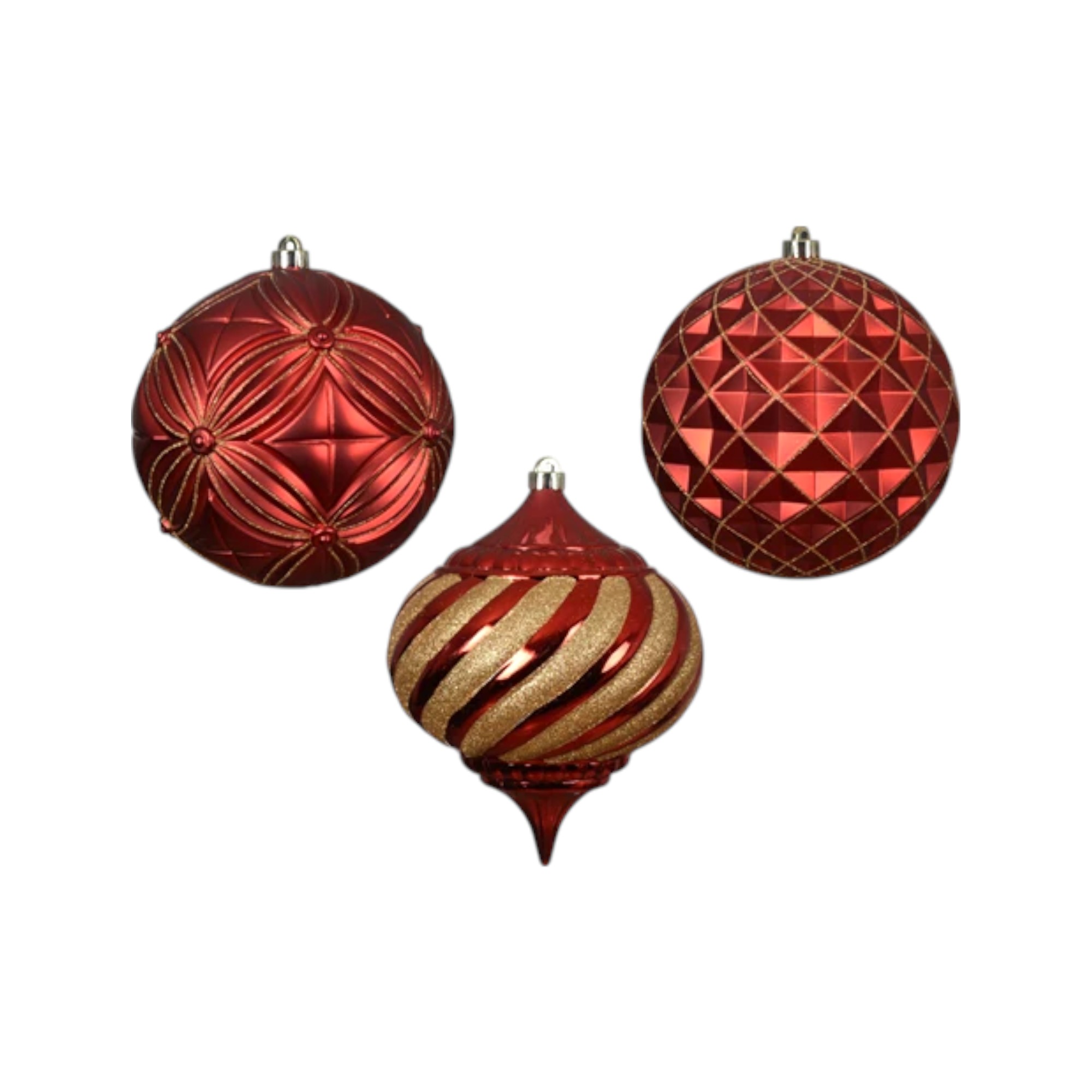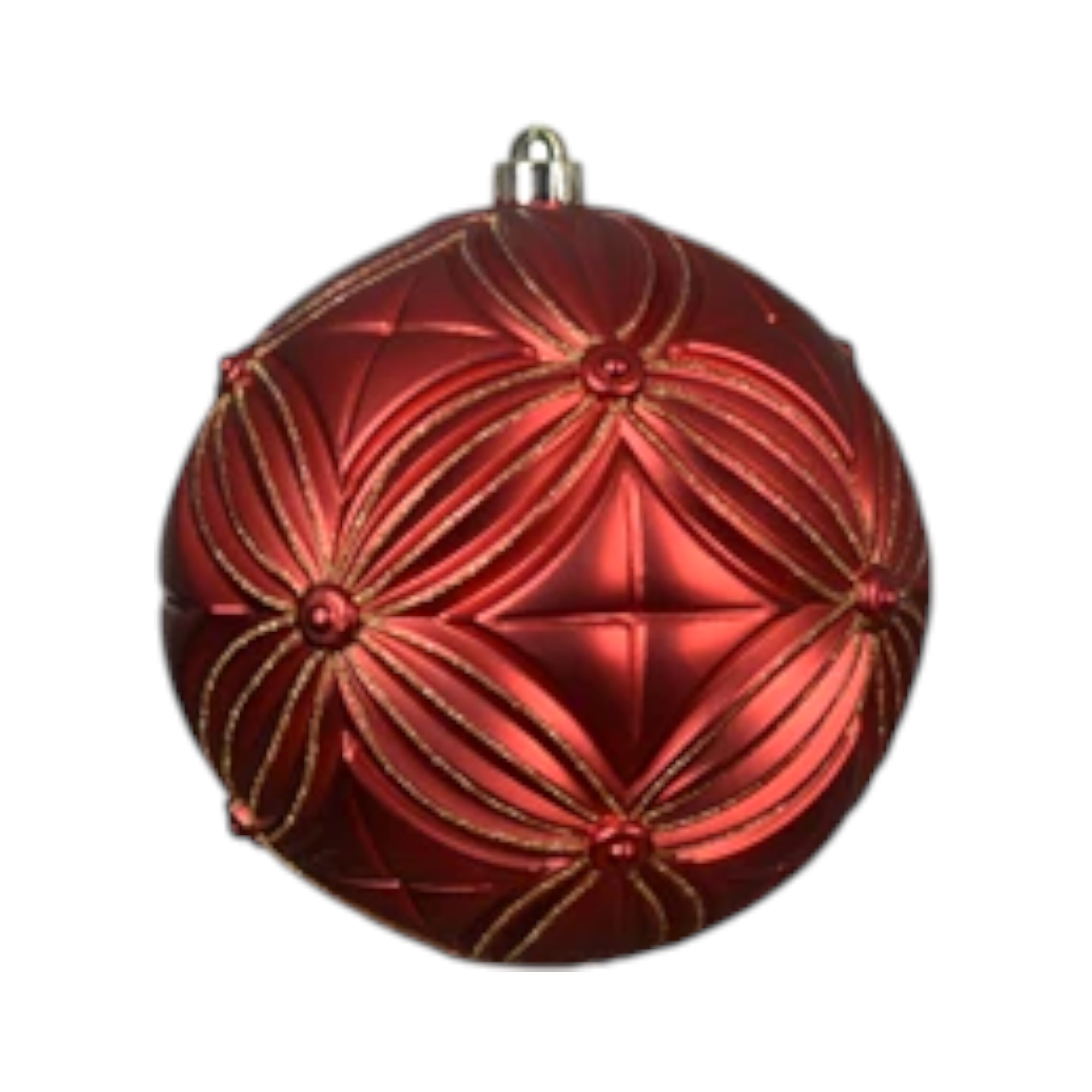 Weihnachtskugel, Plastik, ROT mit Muster, matt Ø 20 cm.