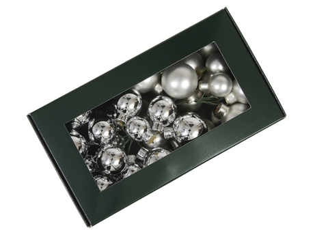 Weihnachtskugeln auf Draht, Glas SILBER glänzend/matt Ø2-3 cm. (36 stk.)