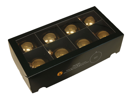 Die Box enthält insgesamt 8 Stück Glas-Weihnachtskugeln.