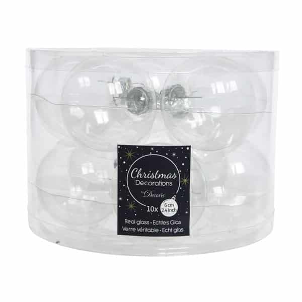 Das größte Angebot an Glas-Weihnachtskugeln und Weihnachtsschmuck zu günstigen Preisen finden Sie hier. Zum Beispiel diese Box mit transparenten klaren Weihnachtskugeln mit einem Durchmesser von 6 cm.