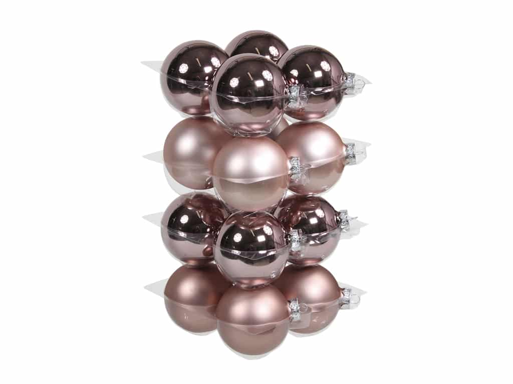 „Das größte Angebot an Glas-Weihnachtskugeln, Weihnachtsschmuck zu günstigen Preisen finden Sie hier. Zum Beispiel diese Box mit einfarbigen matten und glänzenden rosa farbenen Weihnachtskugeln mit einem Durchmesser von 8 cm.