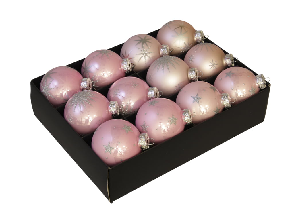 Weihnachtskugeln Glas ROSA Ø75 Dekoration mit STERN Muster 12 Stk.