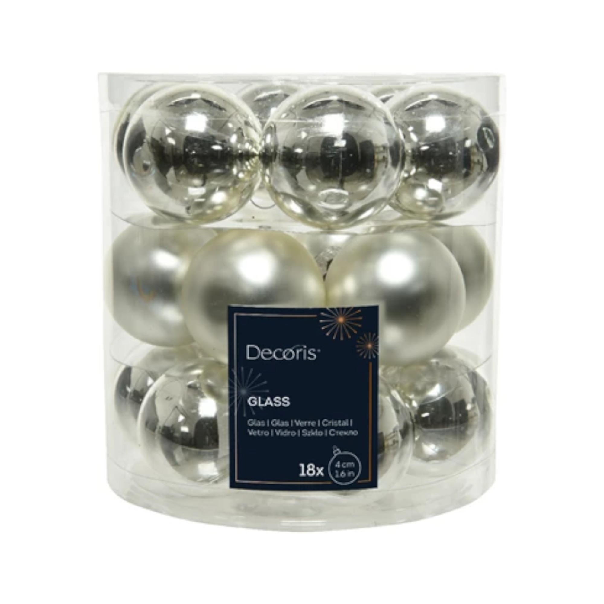 Weihnachtskugeln Glas, SILBER glänzend und matt Ø 4 cm. (18 stk.)