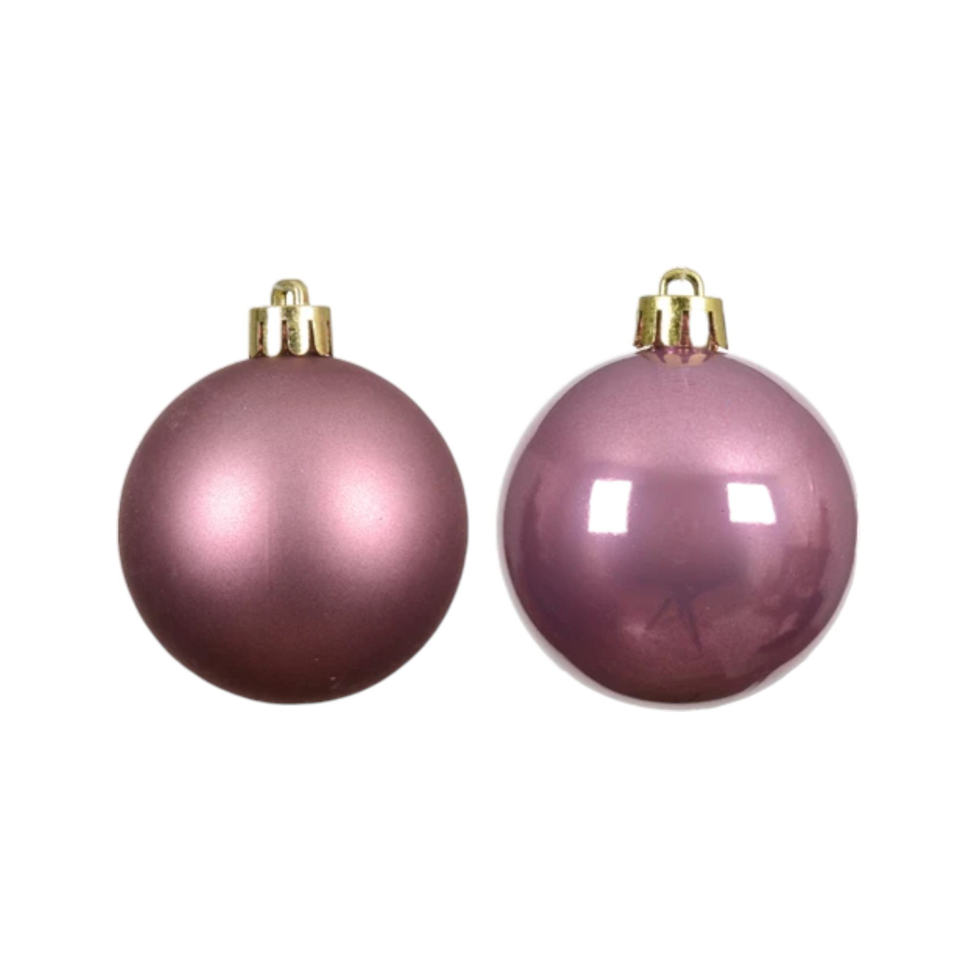 plastik julekugler med diameter fire centimeter i farven gammel rosa sejsten styk i pakken