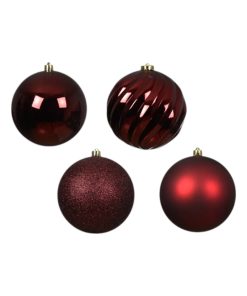 Weihnachtskugeln, Plastik, DUNKELROT, groß Ø 14 cm. (4 stk. mix)
