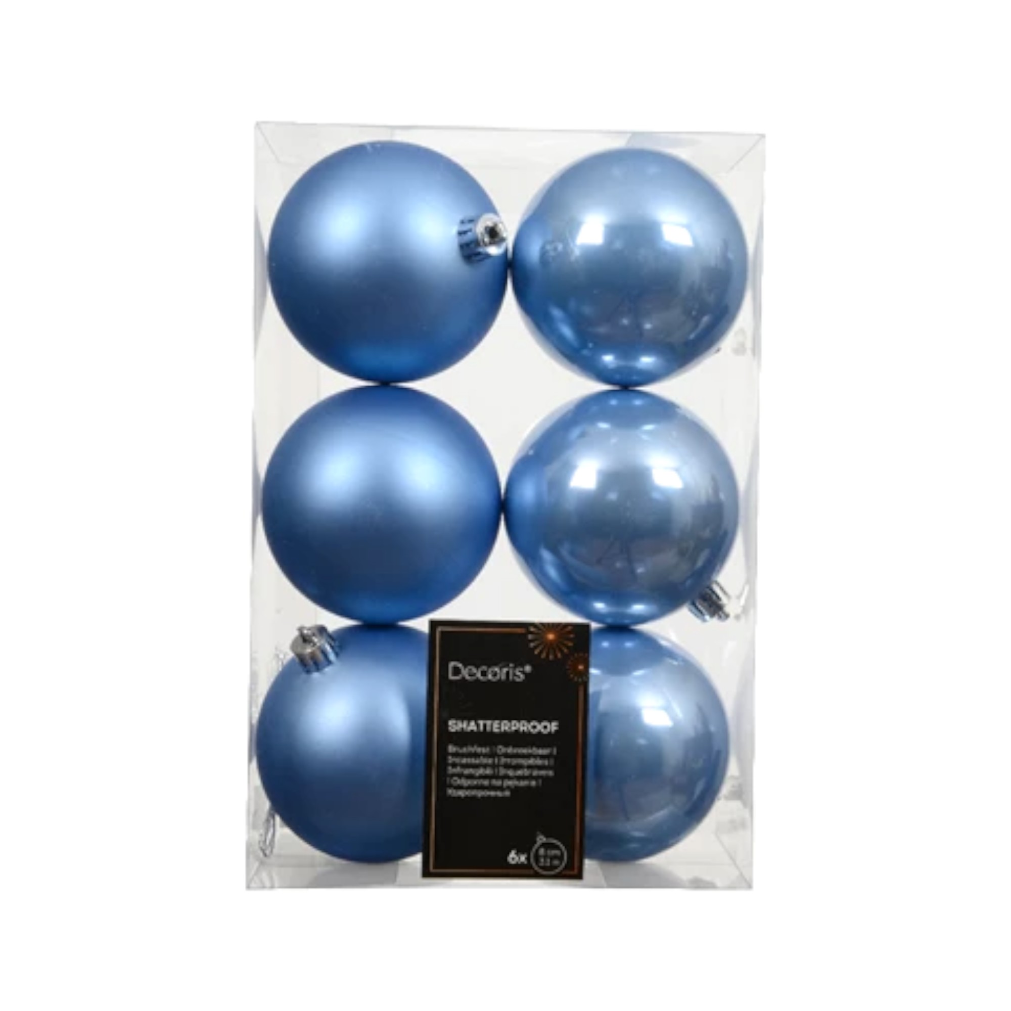 HERZLICHEN GLÜCKWUNSCH – du hast jetzt den Webshop mit den günstigsten Preisen und der größten Auswahl an Weihnachtskugeln aus Plastik gefunden. Zum Beispiel himmelblaue / hellblaue matte und glänzende Weihnachtskugeln Ø8. Der Durchmesser aller Weihnachtskugeln beträgt 6 cm. Schmücke deinen Weihnachtsbaum mit diesen Weihnachtskugeln und dein Baum wird die perfekte Weihnachtsstimmung verbreiten. Wähle ein Farbthema oder mische mit den anderen Farben, die wir auch verkaufen. Plastikkugeln halten besser als Glaskugeln. Sie können meistens einen Sturz auf den Boden überstehen. Wir haben eine riesige Auswahl an Weihnachtskugeln hier im Webshop.
