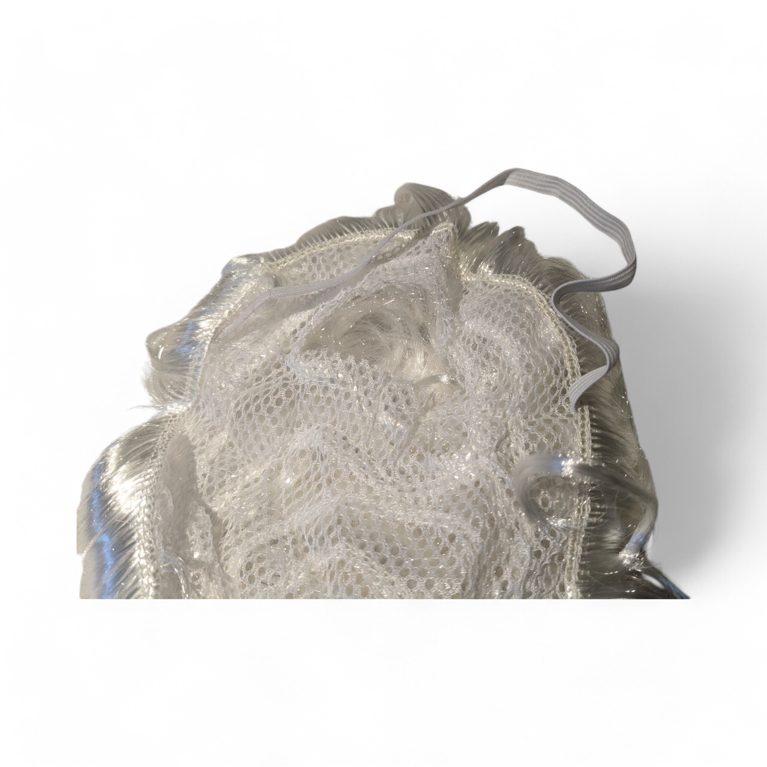 Weihnachtsmannbart für Verkleidung. Gekräuselter weißer Bart. Der Bart hat ein Gummiband, um ihn um den Kopf zu befestigen, und es gibt eine Öffnung für den Mund, damit man sprechen kann, ohne Haare in den Mund zu bekommen. Jeder, der den Weihnachtsmann spielen soll, kann diesen Bart verwenden, so bist du unkenntlich. Der Bart misst 26 x 34 cm. Der gekräuselte Bart ist aus weißem Nylon in einer feinen glänzenden Qualität gefertigt. Wird in einer Tüte geliefert und wiegt 0,05 g.