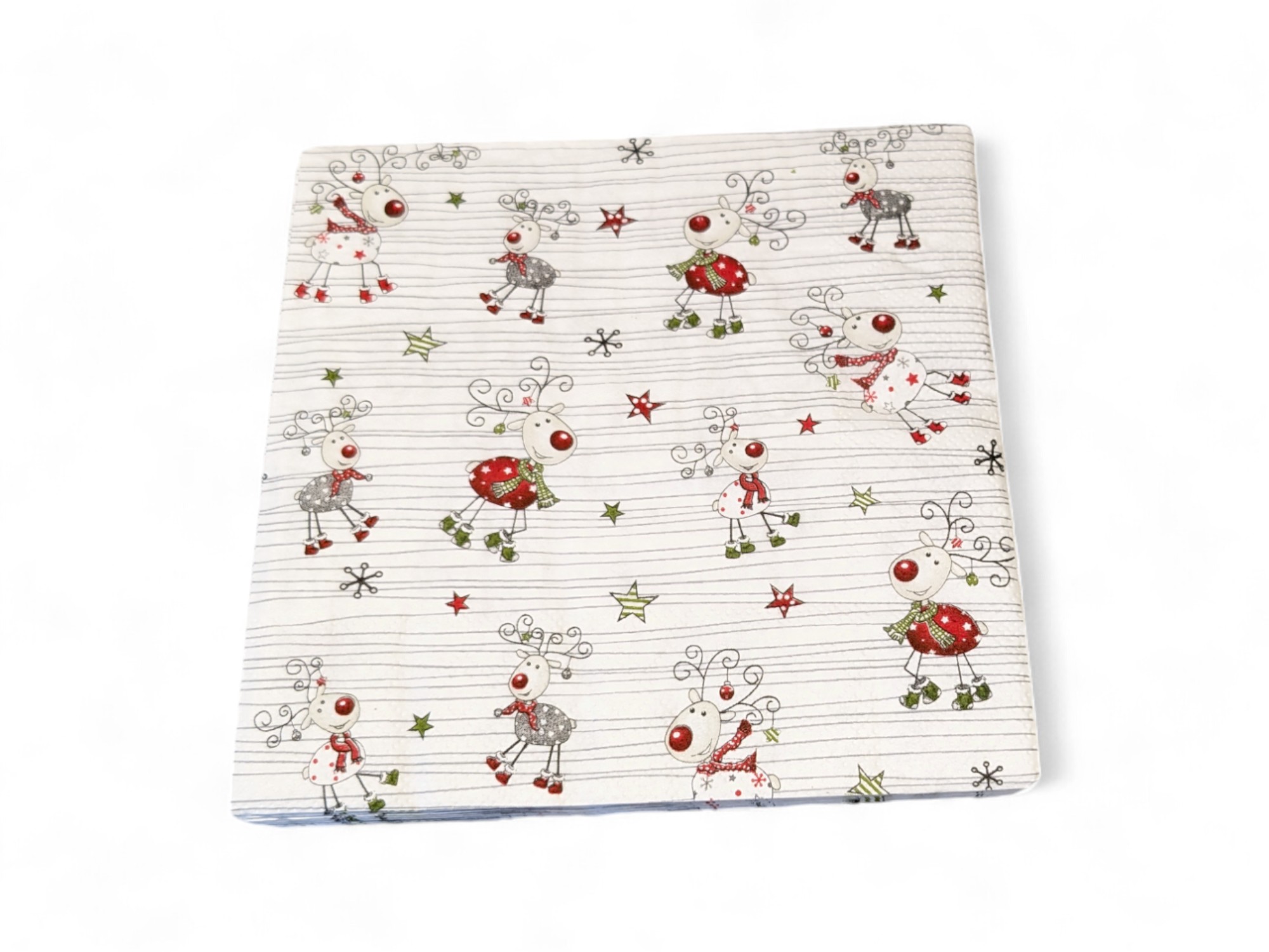 Weihnachtsservietten, FRÜHSTÜCK, kleine Motive vom Rentier Rudolf. 20 Stk.