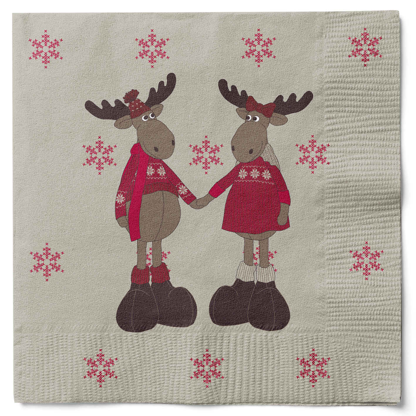 20 styk grå juleservietter med rensdyr iklædt julestrik og varme støvler