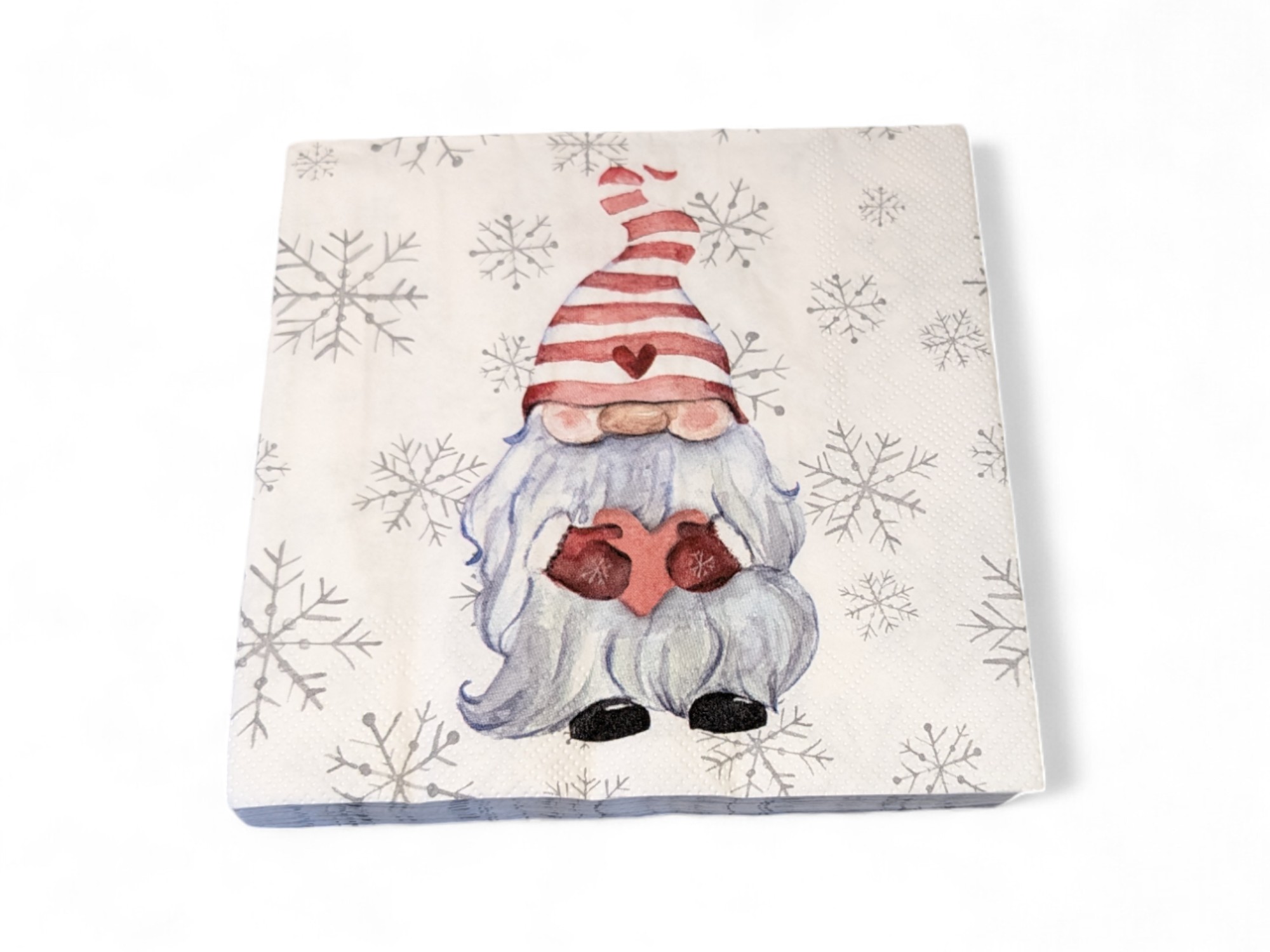 Weihnachtsservietten, MITTAGESSEN, weiß mit wichtel und Schneekristallen. 20 Stk.
