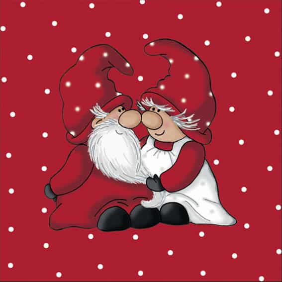 Weihnachtsservietten, rot mit Nis Family im Schneewetter. 20 Stück. Dekoration für Weihnachten