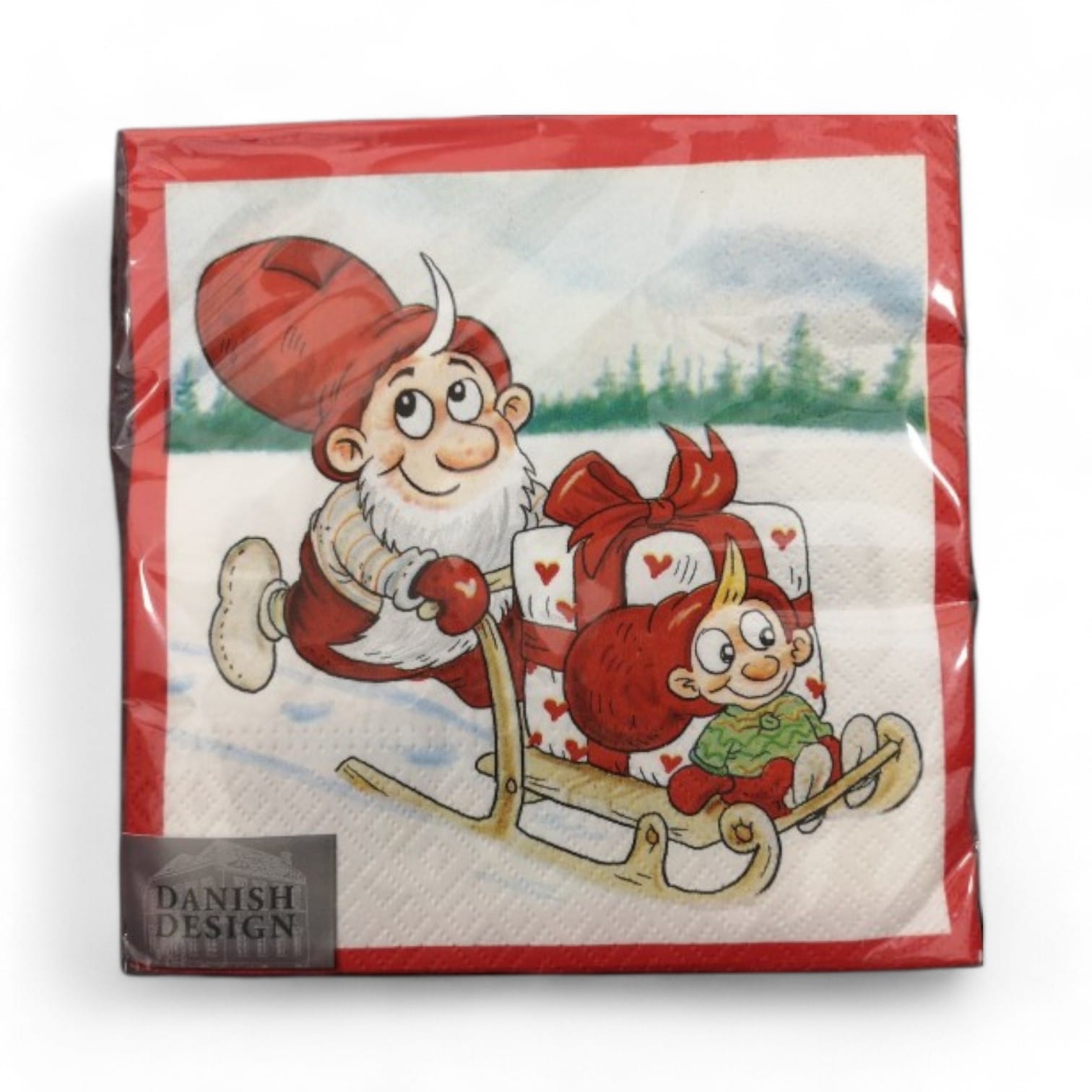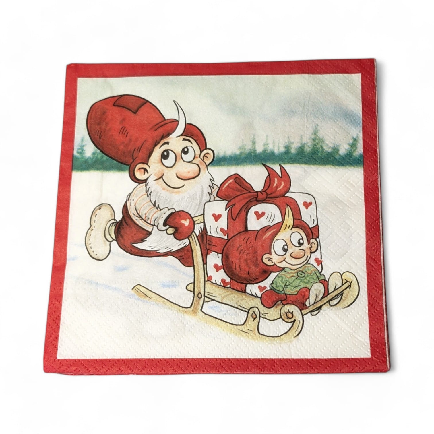 Decken Sie einen schönen Weihnachtstisch mit diesen schönen roten Servietten mit dem Motiv von Julius und seinem Sohn, der ein großes Paket auf dem Schlitten abholt. Sehen Sie sich die vielen schönen und preiswerten Servietten mit Weihnachtsmotiven an, die wir haben. Schöne Weihnachtsservietten sind auch ein gutes Gastgeschenk oder Adventsgeschenk für Erwachsene. Geben Sie z.B. schöne Weihnachtsservietten und einige Kerzen als Geschenk – das ist etwas, das alle Menschen gebrauchen können. Sie können das Geschenk rechtzeitig kaufen und bei sich auf Lager haben, bis Sie es brauchen.