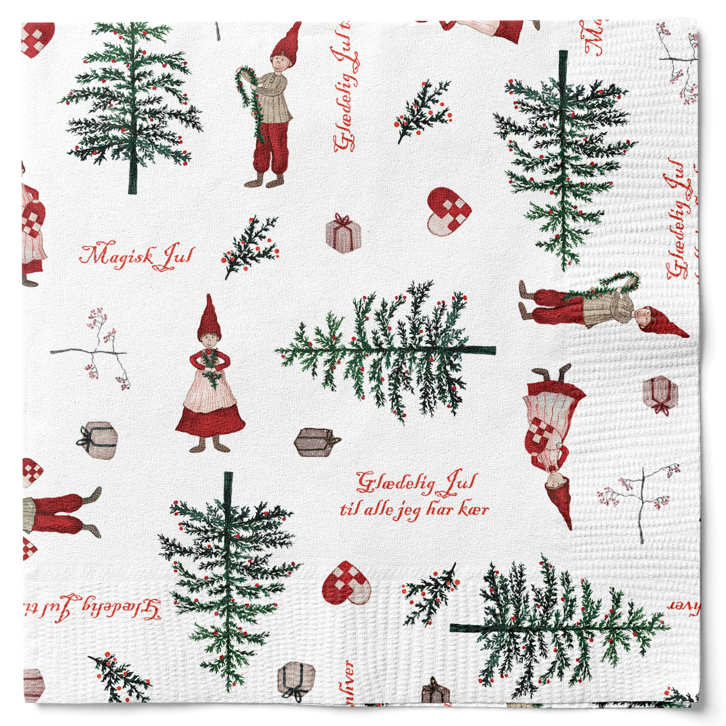 Decken Sie einen schönen Weihnachtstisch mit einigen unserer schönen Weihnachtsservietten. Sehen Sie die vielen schönen und günstigen Servietten mit Weihnachtsmotiven, die wir haben. Schöne Weihnachtsservietten sind auch ein gutes Gastgebergeschenk oder Adventsgeschenk für Erwachsene. Geben Sie z.B. schöne Weihnachtsservietten sowie einige Stearinlys als Geschenk – das ist etwas, das alle Menschen gebrauchen können. Sie können das Geschenk rechtzeitig kaufen und es bei sich auf Lager haben, bis Sie es benötigen. Müssen Sie einen schönen Weihnachtstisch decken? Finden Sie schöne, süße, lustige und günstige Dinge für Ihre Tischdekoration. Ein gut gedeckter Weihnachtstisch ist etwas, das schön vorzubereiten und bereit zu machen ist. In der Weihnachtszeit vor Weihnachten und an den Weihnachtstagen im Dezember ist es schön, Familie und Freunde zu besuchen und zu sehen, wie sie ihr Zuhause für Weihnachten geschmückt haben, aber es ist auch schön, selbst vorzubereiten, Gäste zu empfangen. In den Vorbereitungen kann man überlegen, welche Tischdecke man auf den Tisch legen möchte, und wenn man eine Weihnachtstischdecke hat, wäre es naheliegend, diese auf den Tisch zu legen. Es gibt auch viele süße Weihnachts-Tischsets, die praktisch zu verwenden sind, da sie leicht zu reinigen sind. Danach muss man mit Tellern, Besteck und Gläsern decken, und vielleicht sollten auch Schnapsgläser oder Shotgläser auf den Tisch. Es kommt darauf an, ob es ein Weihnachtsmittagessen, ein Weihnachtsabendessen oder ein Weihnachtskaffeetisch ist, zu dem man einlädt. Hier können Sie Ideen und Inspiration für die Tischdekoration bekommen, da wir eine große Auswahl an Gebrauchskunst für Weihnachten haben.