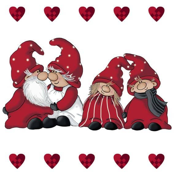 Decken Sie einen schönen Weihnachtstisch mit diesen klassischen weißen Servietten mit einer Weihnachtsmannfamilie und einem Weihnachtsherz. Sehen Sie sich die vielen schönen und preiswerten Servietten mit Weihnachtsmotiven an, die wir haben. Schöne Weihnachtsservietten sind auch ein gutes Gastgeschenk oder Adventsgeschenk für Erwachsene. Geben Sie z.B. schöne Weihnachtsservietten und einige Kerzen als Geschenk – das ist etwas, das alle Menschen gebrauchen können. Sie können das Geschenk rechtzeitig kaufen und bei sich auf Lager haben, bis Sie es brauchen.