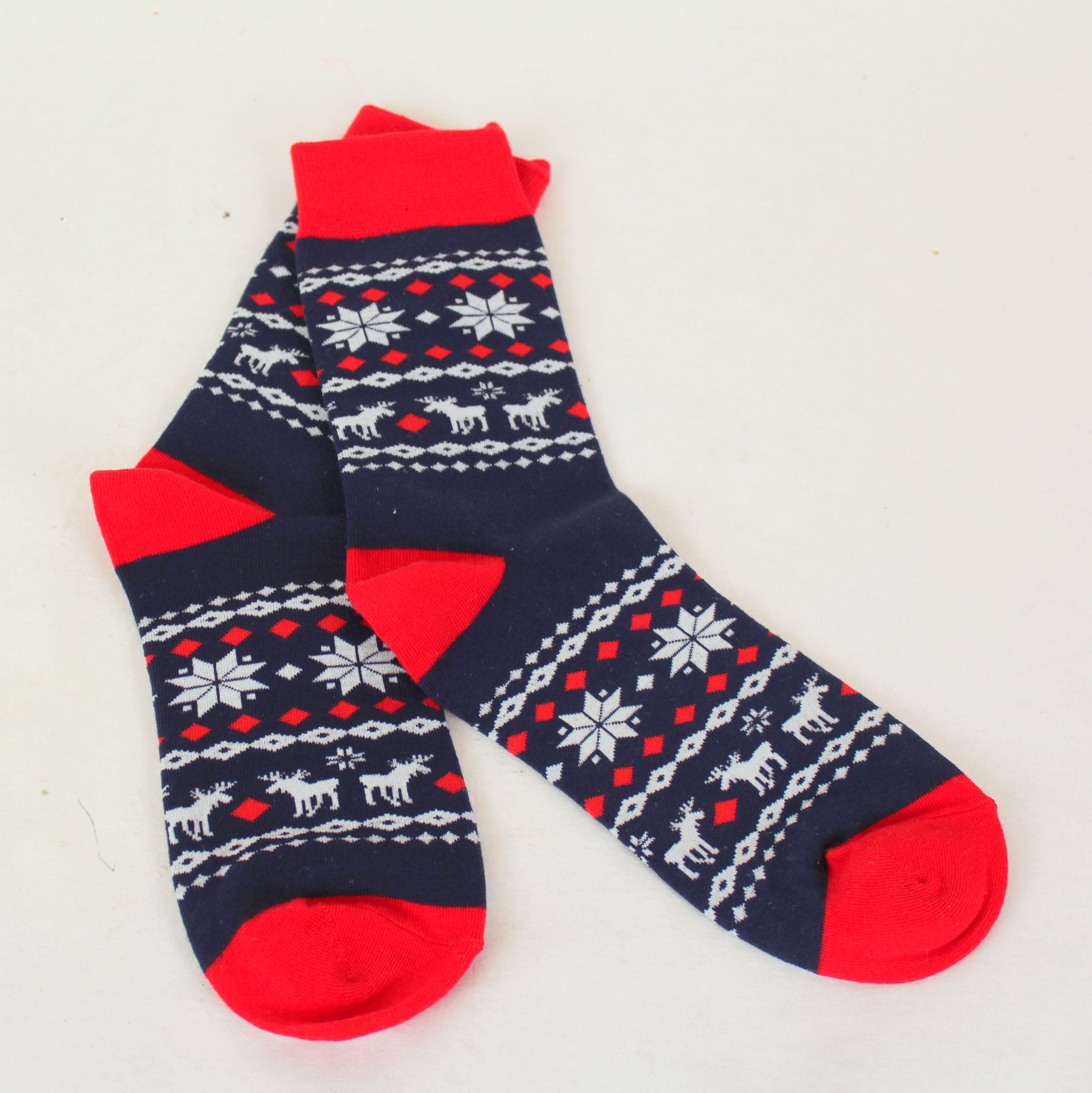 Weihnachtssocken in einem schönen Weihnachtsmuster mit Rentieren und Schneeflocken in blauen, roten und weißen Farben. Die Weihnachtssocken passen zu Schuhgröße 36 – 40. Materialien: 75% Baumwolle, 22% Polyester und 3% Spandex. Waschbar bei 30 Grad. Qualitätssocken mit lustigen und schönen Weihnachtsmotiven. Wir haben viele Modelle und Größen. Weihnachtssocken sind ein perfektes Kalender- oder Adventsgeschenk.