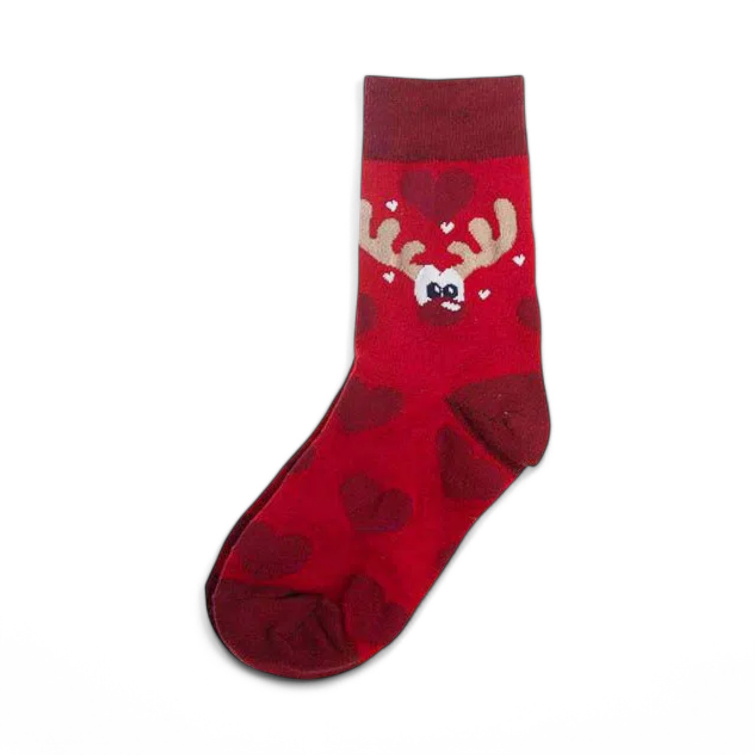 Weihnachtssocken für Kinder. Rot mit Herz und Rentier. Gr. 27-31