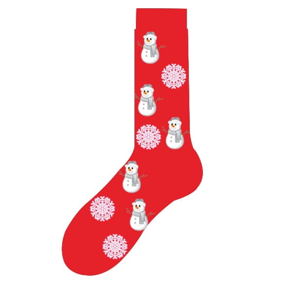 Weihnachtssocken für Männer. Rot mit Schneemännern und Schneeflocken, Gr. 40/41 – 47