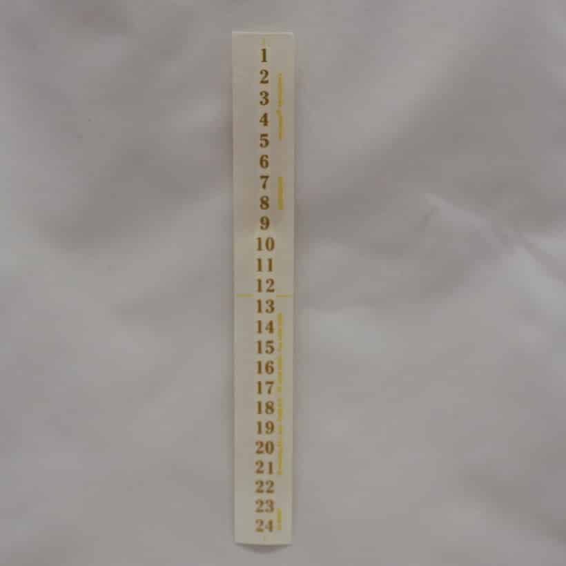 - Legen Sie dann das Zahlenband mit der Zahlenreihe auf die Kerze mit der klebrigen Seite nach unten auf die Kerze.